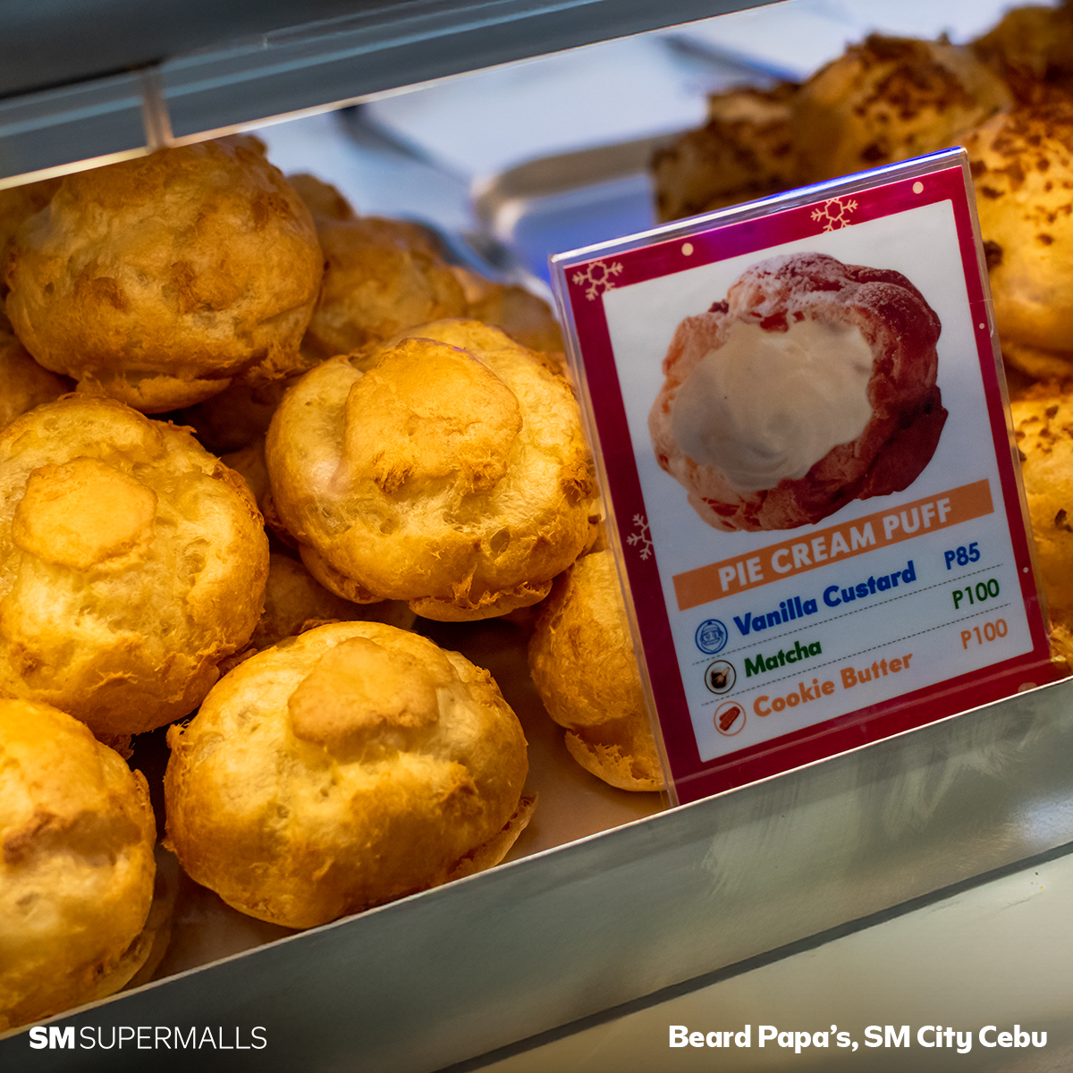 After all that celebration, there’s always room for something sweet. Swing by Beard Papa’s at the North Wing of SM City Cebu and treat yourself to their famous cream puffs—filled with rich chocolate, ube, honey butter, and other seasonal flavors. They’re light, indulgent, and tempting enough to make even puto and tikoy wait their turn.