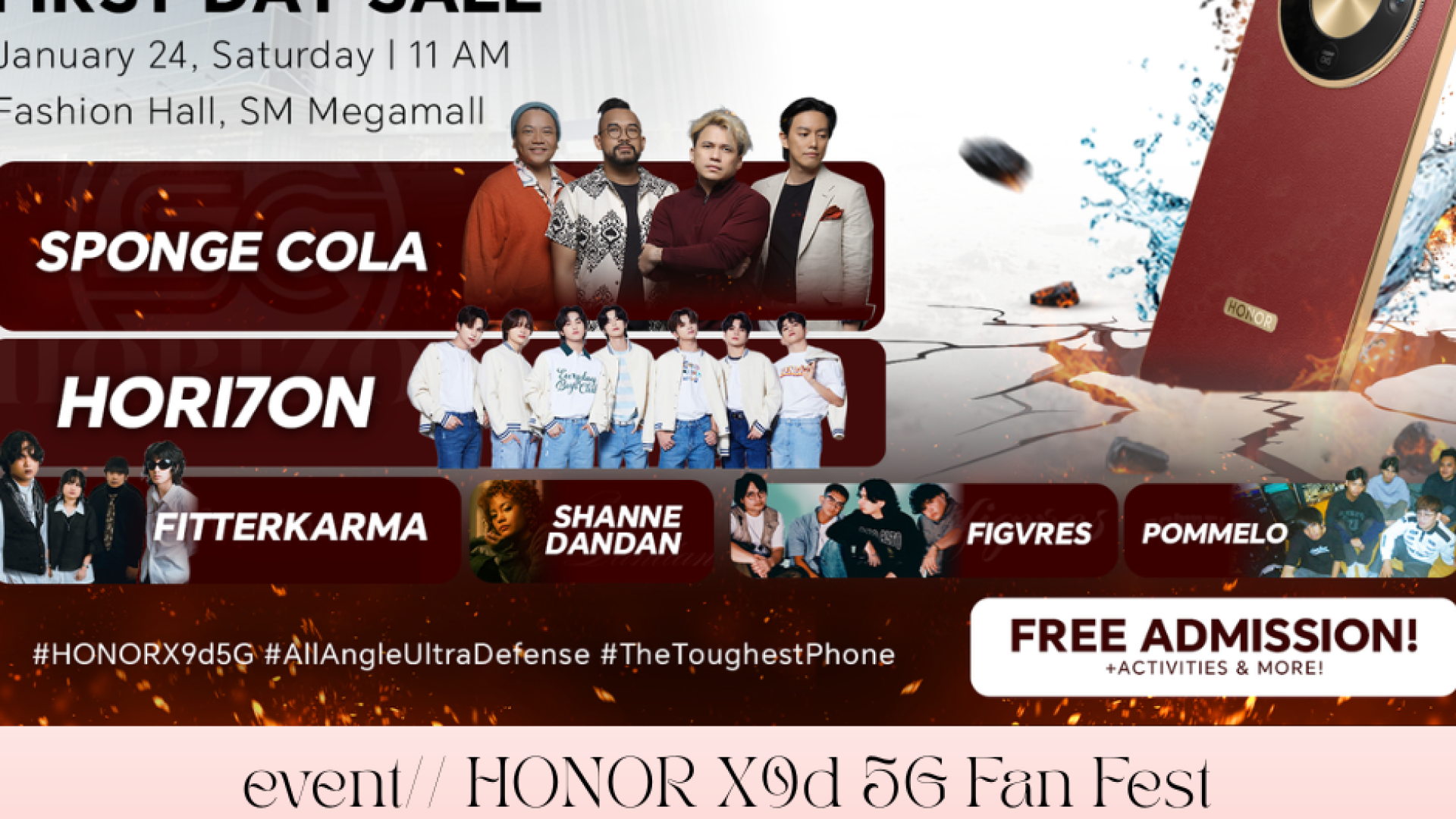 HONOR Philippines will bring together OPM icons from different generations. Headlined by Sponge Cola, young talents HORI7ON, Fitterkarma, Shanne Dandan, Figvres, and Pommelo will also set SM Megamall Fashion Hall ablaze. Aside from the star-studded entertainment, HONOR will be giving away exciting prizes, including brand-new HONOR X9d 5G smartphones, its exclusive collaboration shirt with Linya-Linya, and other exclusive merchandise.