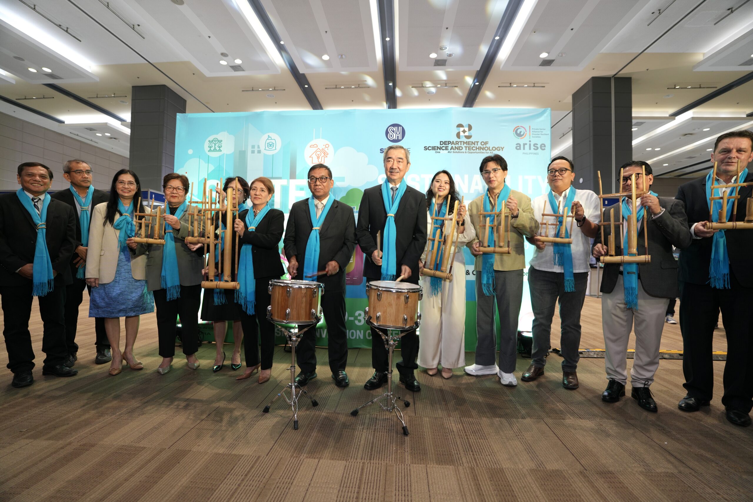 The Expo opened with the ceremonial “Beat of Sustainability,” led by DOST Secretary Renato Solidum and SM Prime Executive Committee Chairman Hans T. Sy, who together struck the Solidrum—a bamboo drum shell developed by the DOST – Forest Products Research and Development Institute (FPRDI).
